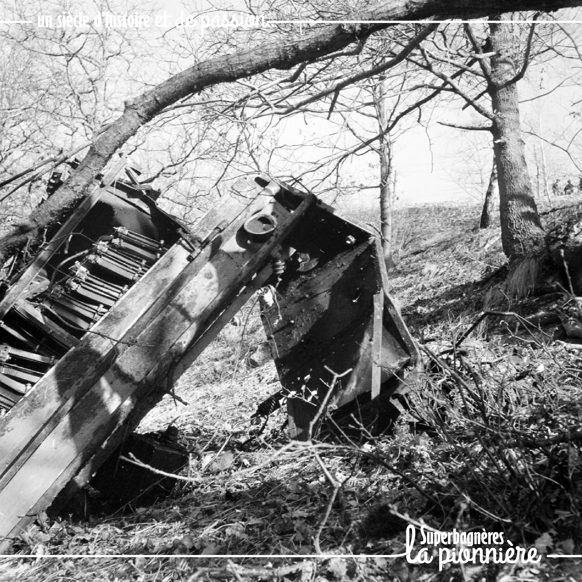 Les agents de la CHM descendent immédiatement dans le ravin pour secourir les mécaniciens mais ils tombent sur une scène terrifiante. Le tracteur dont la caisse est en bois est littéralement pulvérisé.